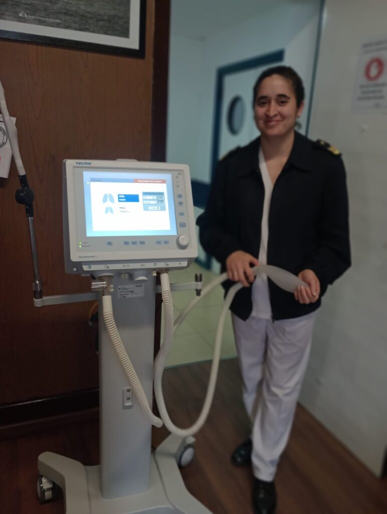 La ocasión fue oportuna para la entrega en donación de un respirador marca “TECME”, con capacidad de brindar ventilación invasiva y no invasiva a pacientes adultos y pediátricos. Estas nuevas tecnologías, serán de gran importancia para potenciar la respuesta hospitalaria durante el desarrollo de las actividades operativas, como así también, en el cumplimiento de los planes en vigor vigentes en el Área Naval Austral.